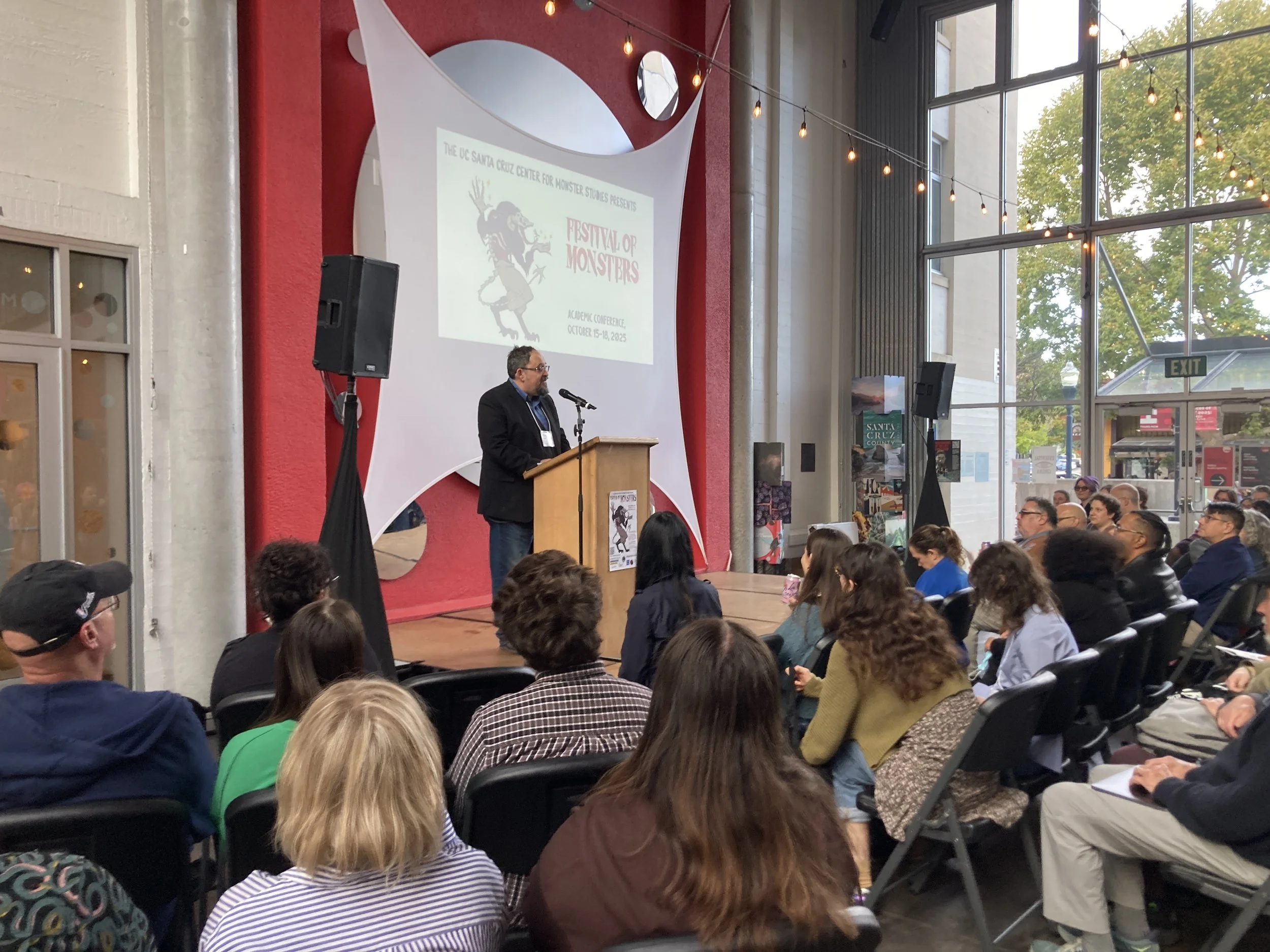 Philosophy professor David Livingstone Smith, author of Making Monsters: The Uncanny Power of Dehumanization, gave a free public keynote Wednesday, Oct. 15, to open the 2025 Festival of Monsters. The lecture was held at the Museum of Art and History.
